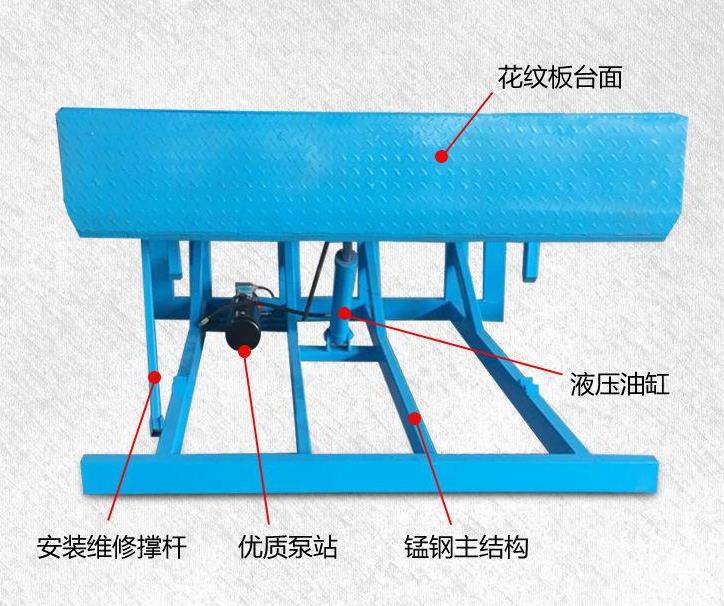 8、電動液壓、操作簡單、高度可任意調節,調節范圍大,提高裝卸效率,節省人力。